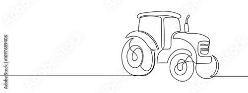 Tractor, one line continuous. Line art outline vector illustration of farm transport, Continuous line art or One Line drawing of tractor for vector illustration, business transportation.