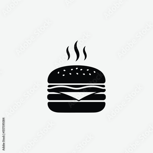 Vector cartoon stick figure drawing conceptual illustration of smiling overweight or obese man holding sign with hamburger or burger image. Junk food concept.
