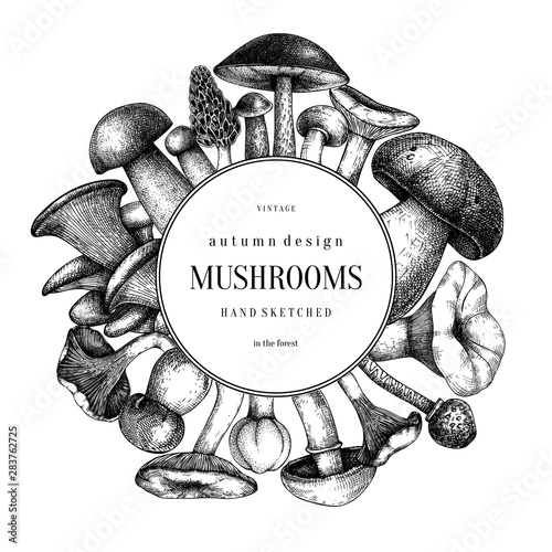 Hand drawn mushrooms vector illustration. Collection of mushrooms icon