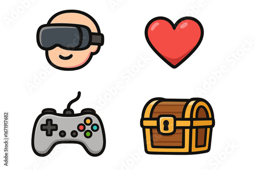 Gamer icons. Gamer and streamer vector set. Filled icon design. Controls and peripherals.
