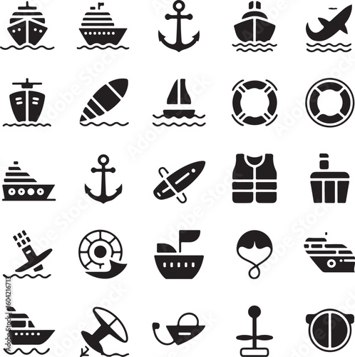 Marine and nautical icon collection: maritime symbols for boat and ocean themes