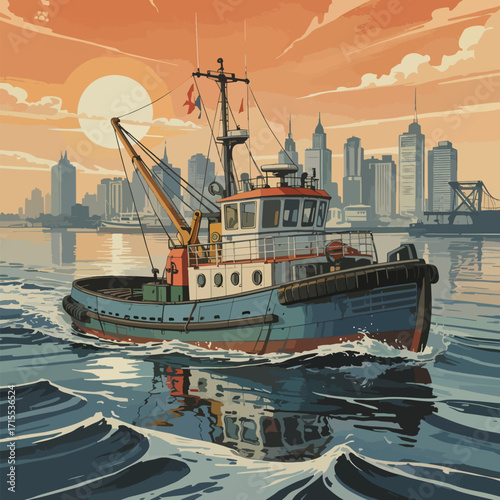 tugboats assisting a large cargo ship in the harbor maritime transport sketch vector pattern shape