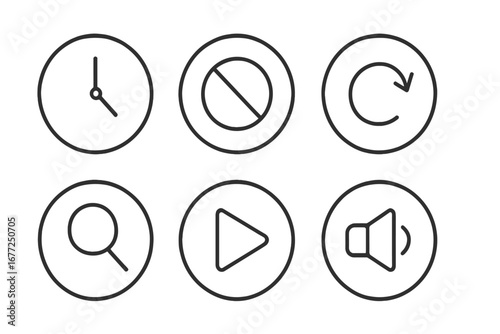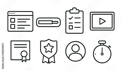 Various outline icons showing digital interface elements arranged in a grid format for user interface design