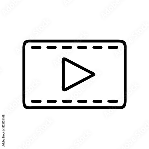 Play icon: A minimalist play icon within a rectangular frame, simple design, perfect for digital and visual content