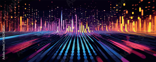 Colorful abstract digital sound waves against a dark background with twinkling lights.