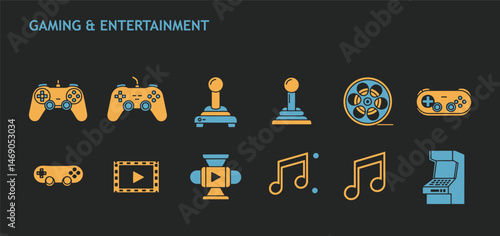 Gaming & Entertainment Icon Set – Stylized Digital Symbols