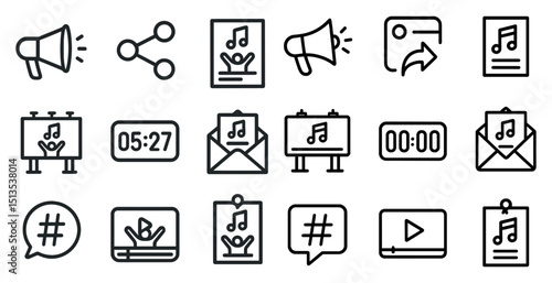 Social media and communication icons set – outline, linear, digital connectivity symbols