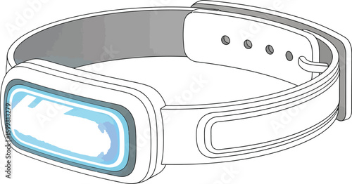 A futuristic white VR headset with a glowing blue screen is showcased, illustrating modern technology and virtual reality experiences for gaming and digital immersion.