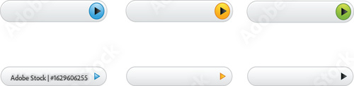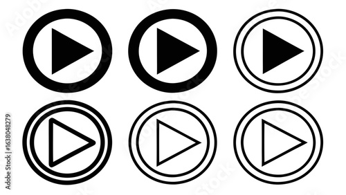 Set of web icons featuring different styles of play button symbols designed for digital interfaces and applications