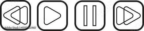 Multimedia player control icons including rewind, play, pause, and fast forward in thin, filled, and colored styles – transparent background