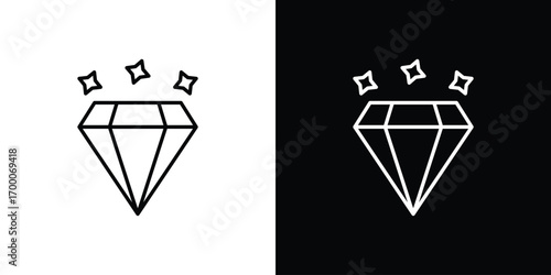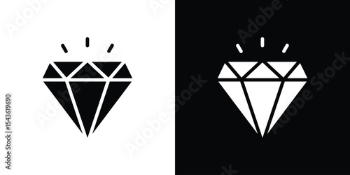 Shining diamond illustration, luxury gemstone icon, jewelry symbol, black and white graphic