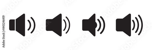 Sound volume icons set with different signal levels. Sound icon, volume symbol, speaker sign, Аn icon that increases and reduces the sound. icon vector. sound symbol.
