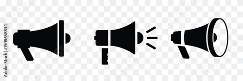 Megaphone icon set on transprerant background. Megaphone loudspeaker with voice recording or siren. Set of announcement icons. Loudspeaker Symbol. Advertising and marketing icons. Vector illustration
