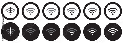 Wi-fi icon set. Internet symbol. Network icon. Wi-fi symbol. Internet sign. Wireless network round outline vector icon set. Stock vector illustration.