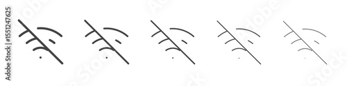 Set of Wi-Fi signal strength and network status icons including locked, disconnected, weak signal, error, and secure connection symbols for UI or mobile app design. Icons, vector.