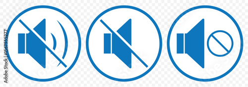 speaker icon set. Blue noise icons symbol. sound level. silent signs. Volume symbol on Transparent Background. EPS 10.