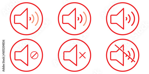 Mute speaker, sound off icon vector set collection. Volume, audio sign symbol. Speaker, sound icon. Sound icon, volume symbol, speaker sign. Vector Illustration  Isolated On a white background.