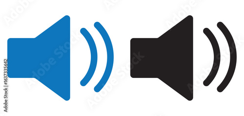 Two speaker volume icons one outlined and one solid isolated on white background