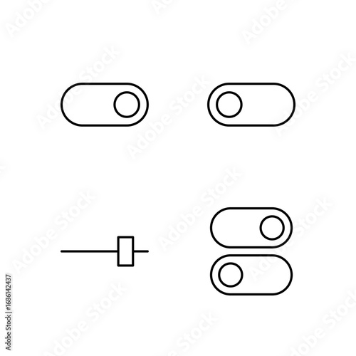 Modern user interface design kit with toggle switches, sliders, and a notification bell icon. Vector elements for mobile app and web design, including on and off buttons.