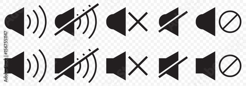 Sound Icons. Set of no sound, No speaker icon. Volume Off symbol. Silent mode icons. Vector isolated Volume icon set. eps 10