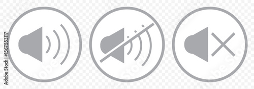 An icon that increases and reduces the sound. A set of sound icons with different signal levels in a flat style. Icon showing the mute in Gray Color on Transparent Background. EPS 10.