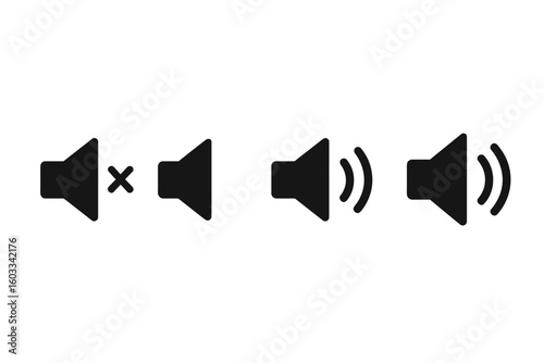 speaker, sound, volume icon set , low and hight level volume speaker icon. voice, audio, silent, mute icons in flat style for media player app and website