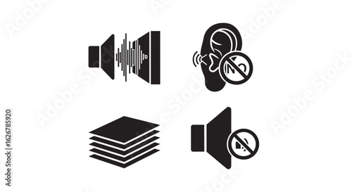 Sound wave and ear icons with mute symbols silhouette