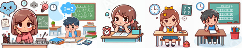 vector set of small students limp on school bench