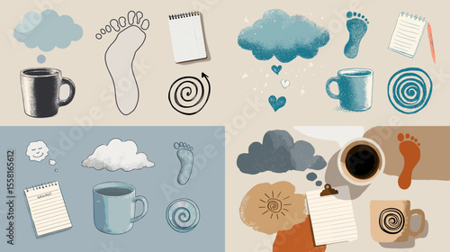 Mental health icon collection, therapy and wellness symbols. mindful healing design set