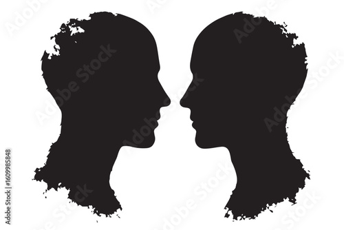Minimalist Line Art of Two Heads Facing Each Other with Tangled Thoughts Being Transferred Vector