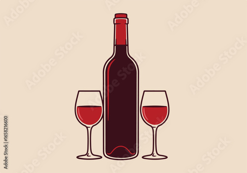 Flat style banner, wine bottle, glass outline illustration, kitchen decor. Poster for restaurant, wine bar, festival flyer design, wine tasting, sommelier, red wine, chardonnay, merlot