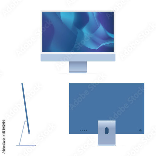Realistic Computer blue color 3D realistic vector mockup isolated Vector