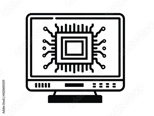 Computer monitor with integrated circuit vector illustration displaying technology and modern computing showcasing innovation and data processing for digital applications