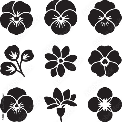 Flat Icon Silhouettes of Pansy Flower. Vector Art Illustration