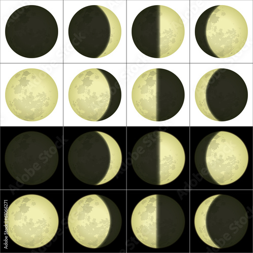 round composition of different phases of the moon