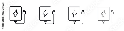 Power bank icon set. Vector illustration for tech tutorials, product manuals, portable device concepts, energy related content and infographics. EPS10