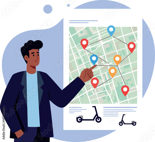Electric Scooter Rental Service Vector Illustration featuring Transportation You Can Rent for a Quick and Eco Friendly Ride in a Flat Style Background