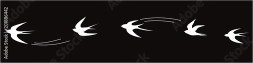 Flying swallow birds silhouettes vector illustration. Migratory martlets group isolated on white.