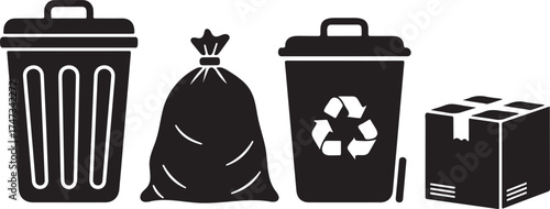 High-quality garbage bags vector silhouette set. Perfect for recycling, trash icons, waste bag clipart, and eco projects. Download and use in any design.