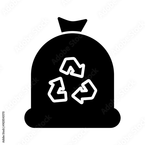 Essential black trash bag icon illustration waste disposal garbage sack symbol for cleanup and rubbish collection