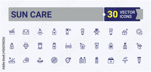 Skin care line icons. Sunscreen, UV Defence Vector Thin Line Icons. Sunscreen, Suntan Rules Linear Illustrations. Summer, Seaside Vacations Cosmetics.