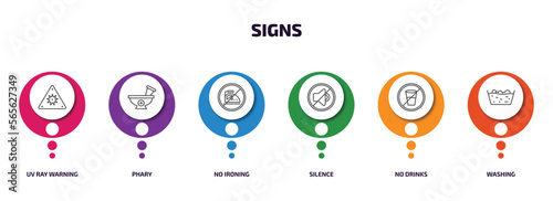 editable thin line icons with infographic template. infographic for signs concept. included stop, no swimming, phary, uv ray warning icons.