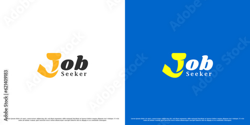 Job seeker logotype design illustration. Simple flat silhouette combined letter J tie for word job modern minimalist. Letter j symbol icon for job seeker job vacancy recruitment career company career.