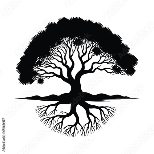 Stylized tree of life vector illustration isolated on white background, representing growth, connection to nature, and the cyclical nature of existence