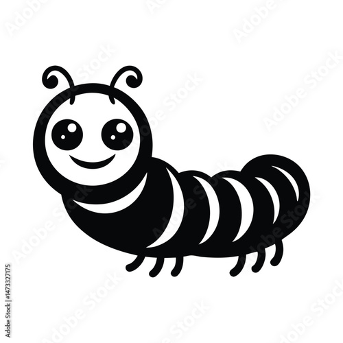 Striking Black Silhouette of a Centipede Insect Isolated on White Background