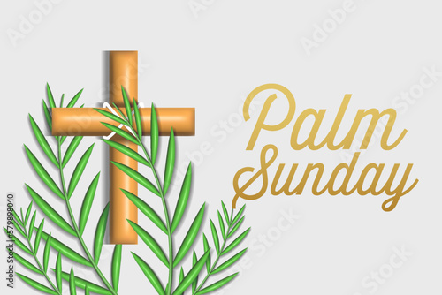 palm leaves and cross, christian Palm Sunday symbol- vector illustration