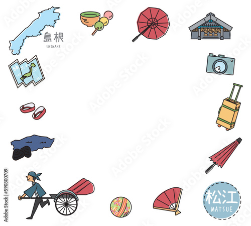 夏の観光を楽しむ多種多様な老若男女の人々と乗り物のセット(線画)