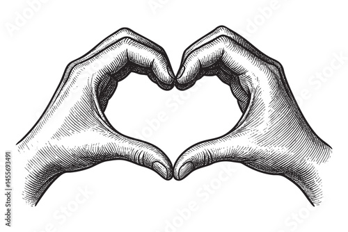 Intricate vintage engraving of two cherubs forming a heart shape with ribbons, evoking love, romance, and divine beauty.