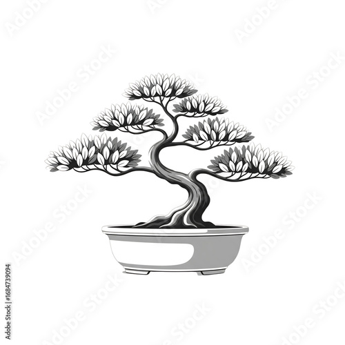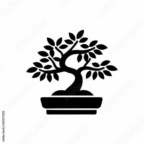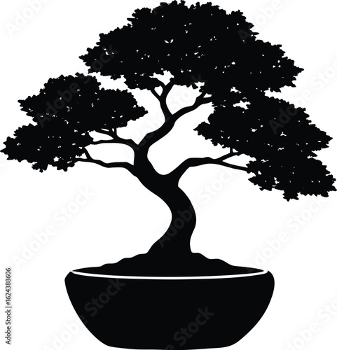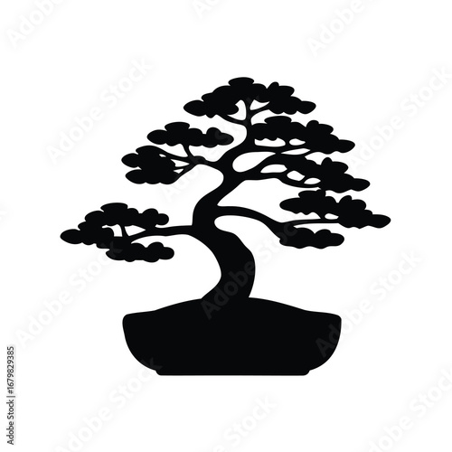Bonsai tree silhouette, Japanese miniature plant vector, zen garden illustration for nature, art, meditation, and design projects