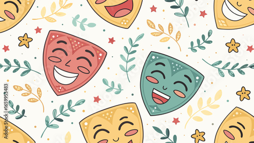 Cartoon bonsai trees illustration, green summer tree and autumn foliage tree, seasonal nature design, botanical drawing, isolated decorative vector artwork